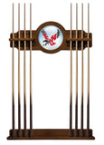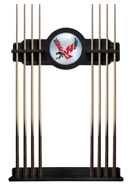 This Officially Licensed Eastern Washington 2-piece Cue Rack by the Holland Bar Stool Co. is a must have accessory for your pool table and game room. Our furniture quality que rack is solid wood, no particle board or veneer like the others in the market. The top section features CNC routed decorative elements and a 10 ½” real mirrored glass center piece that features a first surface digitally UV printed logo, not a sticker like the others. The “shelves” have routed holes that hold the stick in place and won’t damage the cue shaft like inexpensive plastic clips. The bottom section has designated areas for the cue bumper to sit in that are felt lined. The rack features a multi-step stain and finish process that ensures a durable yet elegant appearance. Hanging hardware is installed in both top and bottom sections that allow for tight, flush mounting to the wall. The unit comes complete with mounting hardware and instructions. Overall Dimensions: Upper Section: 34" x 14"; Lower Section: 34" x 3 1/2". Finish off your game room with this beautiful Cue Rack from the Holland Bar Stool Co.