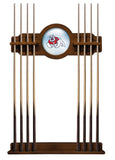 This Officially Licensed Fresno State 2-piece Cue Rack by the Holland Bar Stool Co. is a must have accessory for your pool table and game room. Our furniture quality que rack is solid wood, no particle board or veneer like the others in the market. The top section features CNC routed decorative elements and a 10 ½” real mirrored glass center piece that features a first surface digitally UV printed logo, not a sticker like the others. The “shelves” have routed holes that hold the stick in place and won’t damage the cue shaft like inexpensive plastic clips. The bottom section has designated areas for the cue bumper to sit in that are felt lined. The rack features a multi-step stain and finish process that ensures a durable yet elegant appearance. Hanging hardware is installed in both top and bottom sections that allow for tight, flush mounting to the wall. The unit comes complete with mounting hardware and instructions. Overall Dimensions: Upper Section: 34" x 14"; Lower Section: 34" x 3 1/2". Finish off your game room with this beautiful Cue Rack from the Holland Bar Stool Co.