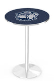Made for the ultimate sports fan, you will be proud to show where your loyalty lies with this impressive Officially Licensed pub table from the Holland Bar Stool Co. This L214 table with round base is sure to add a touch of class to your setting. You can't find a higher quality logo table on the market. The sublimated, full color, scratch resistant, laminate top it attached with a VOC free, environmentally friendly, hot-melt adhesive. Table bases are commercial quality with a cast iron base plate, steel column, and spider. The base is triple chrome plated to ensure a rich, sleek, long lasting finish. The bases are easy to assemble and with locking tabs, top and bottom, are strong and steady. Tables have adjustable feet to accomodate any floor surface. If you're going to finish your bar, game room, or man cave - do it right with a table from the Holland Bar Stool Co.