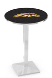 Made for the ultimate sports fan, you will be proud to show where your loyalty lies with this impressive Officially Licensed pub table from the Holland Bar Stool Co. This L217 table with square base is sure to add a touch of class to your setting. You can't find a higher quality logo table on the market. The sublimated, full color, scratch resistant, laminate top it attached with a VOC free, environmentally friendly, hot-melt adhesive. Table bases are commercial quality with a cast iron base plate, steel column, and spider. The base is triple chrome plated to ensure a rich, sleek, long lasting finish. The bases are easy to assemble and with locking tabs, top and bottom, are strong and steady. Tables have adjustable feet to accomodate any floor surface. If you're going to finish your bar, game room, or man cave - do it right with a table from the Holland Bar Stool Co.