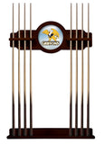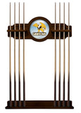 This 2 Piece Cue Rack by Holland Bar Stool is a must have accessory for your pool table and game room. Cue Rack features CNC routed decorative elements and a 10 1/2" real mirrored center Piece that features logo of your choice. Solid wood shelves have routed holes that hold the stick in place and won't damage the cue shaft like inexpensive plastic clips. ttom Piece has designated areas for cue bumper that are felt lined. Hanging hardware is installed in both top and bottom Pieces.