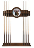 This Officially Licensed Montana 2-piece Cue Rack by the Holland Bar Stool Co. is a must have accessory for your pool table and game room. Our furniture quality que rack is solid wood, no particle board or veneer like the others in the market. The top section features CNC routed decorative elements and a 10 ½” real mirrored glass center piece that features a first surface digitally UV printed logo, not a sticker like the others. The “shelves” have routed holes that hold the stick in place and won’t damage the cue shaft like inexpensive plastic clips. The bottom section has designated areas for the cue bumper to sit in that are felt lined. The rack features a multi-step stain and finish process that ensures a durable yet elegant appearance. Hanging hardware is installed in both top and bottom sections that allow for tight, flush mounting to the wall. The unit comes complete with mounting hardware and instructions. Overall Dimensions: Upper Section: 34" x 14"; Lower Section: 34" x 3 1/2". Finish off your game room with this beautiful Cue Rack from the Holland Bar Stool Co.