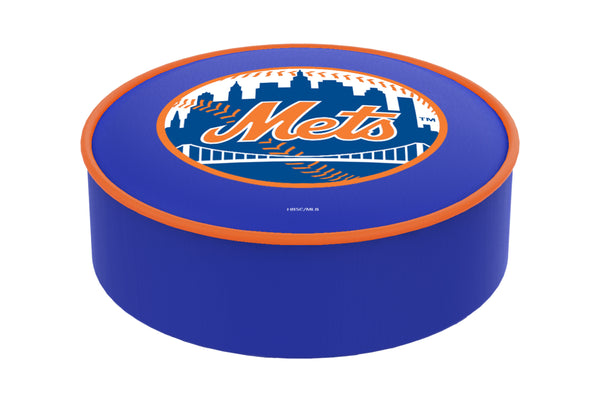 This New York Mets bar stool cushion cover is hand-made in the USA by Holland Bar Stool Co.; using the finest commercial grade vinyl and utilizing a state of the art printing process to give you the most detailed logo possible. This cover slips over your existing cushion, held in place by an elastic band. The vinyl cover will fit 14" diameter x 4" thick seats. This product is Officially Licensed. Make those old stools new again while supporting your team with the help of Holland Bar Stool Co.!