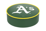 This Oakland Athletics bar stool cushion cover is hand-made in the USA by Holland Bar Stool Co.; using the finest commercial grade vinyl and utilizing a state of the art printing process to give you the most detailed logo possible. This cover slips over your existing cushion, held in place by an elastic band. The vinyl cover will fit 14" diameter x 4" thick seats. This product is Officially Licensed. Make those old stools new again while supporting your team with the help of Holland Bar Stool Co.!