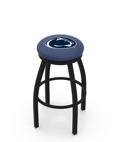 Made for the ultimate sports fan, you will be proud to show where your loyalty lies with this impressive Officially Licensed stool from the Holland Bar Stool Co. This contemporary L8B2B stool has a single-ring black wrinkle base with a 2 1/2" thick cushion sitting on top of a 2" black wrinkle ring that conceals the swivel for an exceptionally clean look. A state of the art print process is used in applying specially formulated UV vinyl ink in numerous stages to produce a sharp, crisp, clear image to ensure a perfect reproduction of the logo. You won't find a higher quality logo stool on the market. The frame is made from commercial quality 16 gauge, 1 1/4 inch tube steel with solid mig welded joints to guarantee strength and durability. The powder coated finish resists chips and scratches and ensures a long-lasting, rich appearance. The cushion seats are of the highest quality as well, utilizing a breathable, commercial grade vinyl. At the heart of the cushion is highly-dense, US made foam that provides maximum support and will not breakdown in a couple years. If you're going to finish your bar, game room, or man cave do it right- with a logo stool made in the USA by the Holland Bar Stool Co.