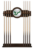 This Officially Licensed South Florida 2-piece Cue Rack by the Holland Bar Stool Co. is a must have accessory for your pool table and game room. Our furniture quality que rack is solid wood, no particle board or veneer like the others in the market. The top section features CNC routed decorative elements and a 10 ½” real mirrored glass center piece that features a first surface digitally UV printed logo, not a sticker like the others. The “shelves” have routed holes that hold the stick in place and won’t damage the cue shaft like inexpensive plastic clips. The bottom section has designated areas for the cue bumper to sit in that are felt lined. The rack features a multi-step stain and finish process that ensures a durable yet elegant appearance. Hanging hardware is installed in both top and bottom sections that allow for tight, flush mounting to the wall. The unit comes complete with mounting hardware and instructions. Overall Dimensions: Upper Section: 34" x 14"; Lower Section: 34" x 3 1/2". Finish off your game room with this beautiful Cue Rack from the Holland Bar Stool Co.