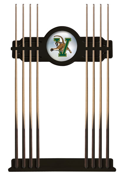 This Officially Licensed Vermont 2-piece Cue Rack by the Holland Bar Stool Co. is a must have accessory for your pool table and game room. Our furniture quality que rack is solid wood, no particle board or veneer like the others in the market. The top section features CNC routed decorative elements and a 10 ½” real mirrored glass center piece that features a first surface digitally UV printed logo, not a sticker like the others. The “shelves” have routed holes that hold the stick in place and won’t damage the cue shaft like inexpensive plastic clips. The bottom section has designated areas for the cue bumper to sit in that are felt lined. The rack features a multi-step stain and finish process that ensures a durable yet elegant appearance. Hanging hardware is installed in both top and bottom sections that allow for tight, flush mounting to the wall. The unit comes complete with mounting hardware and instructions. Overall Dimensions: Upper Section: 34" x 14"; Lower Section: 34" x 3 1/2". Finish off your game room with this beautiful Cue Rack from the Holland Bar Stool Co.