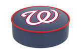 This Washington Nationals bar stool cushion cover is hand-made in the USA by Holland Bar Stool Co.; using the finest commercial grade vinyl and utilizing a state of the art printing process to give you the most detailed logo possible. This cover slips over your existing cushion, held in place by an elastic band. The vinyl cover will fit 14" diameter x 4" thick seats. This product is Officially Licensed. Make those old stools new again while supporting your team with the help of Holland Bar Stool Co.!