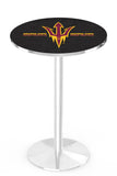 Made for the ultimate sports fan, you will be proud to show where your loyalty lies with this impressive Officially Licensed pub table from Holland Bar Stool. This L214 table with round base is sure to add a touch of class to your setting. You can't find a higher quality logo table on the market. The sublimated, full color, scratch resistant, laminate top it attached with a VOC free, environmentally friendly, hot-melt adhesive. Table bases are commercial quality with a cast iron base plate, steel column, and spider. The base is triple chrome plated to ensure a rich, sleek, long lasting finish. The bases are easy to assemble and with locking tabs, top and bottom, are strong and steady. Tables have adjustable feet to accomodate any floor surface. If you're going to finish your bar, game room, or man cave - do it right with a table from Holland Bar Stool.