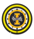 Our double neon Logo Clocks are the perfect way to show your school pride. Featuring a Black casing and a team color specific neon outer ring that accents the custom printed clock face which is lit up by an brilliant white, inner neon ring. The Neon rings are easily turned on and off with a pull chain on the bottom of the clock, and are powered by a UL Listed power transformer that runs off standard 120V outlet. Accurate quartz movement ensures proper time and is powered by a single, AA battery (not included). Whether purchasing as a gift for a recent grad, sports super fan, or for yourself, you can take satisfaction knowing you're buying a clock that is proudly made by the Holland Bar Stool Company in Holland, MI USA