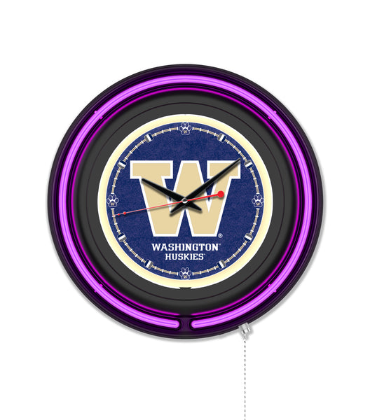University of Washington Black Case Neon Clock