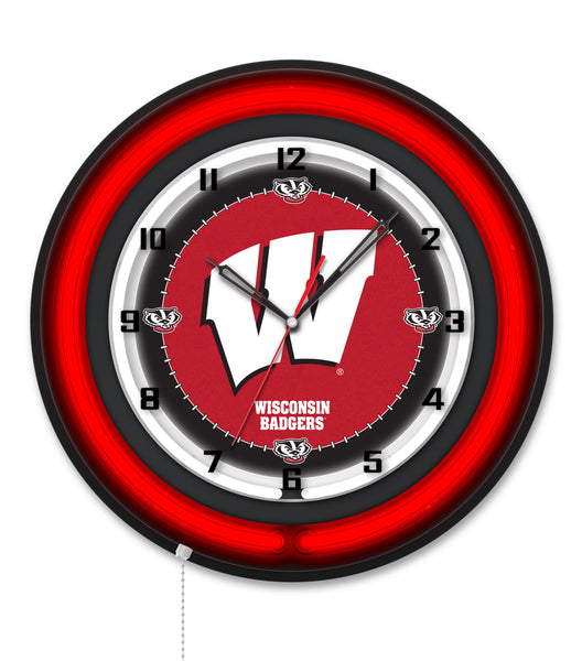 Our double neon Logo Clocks are the perfect way to show your school pride. Featuring a Black casing and a team color specific neon outer ring that accents the custom printed clock face which is lit up by an brilliant white, inner neon ring. The Neon rings are easily turned on and off with a pull chain on the bottom of the clock, and are powered by a UL Listed power transformer that runs off standard 120V outlet. Accurate quartz movement ensures proper time and is powered by a single, AA battery (not included). Whether purchasing as a gift for a recent grad, sports super fan, or for yourself, you can take satisfaction knowing you're buying a clock that is proudly made by the Holland Bar Stool Company in Holland, MI USA